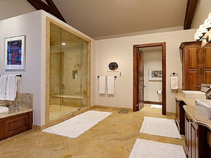 The private master king bedroom suite is on the main floor off the great room. The office and dressing area is on the main level as well. The private Master Suite has a huge walk-in closet, ensuite bath with air bubble Jacuzzi tub, large steam shower, and heated bathroom floor. Downstairs there are 4 large bedrooms all with modern ensuite baths. Both master bedrooms have brand new king beds. The third bedroom downstairs has a queen bed, and the fourth bedroom contains two new twin beds. All have beautiful new crisp linens, pillows, and bed coverings. You will truly be experiencing 5 star luxury!